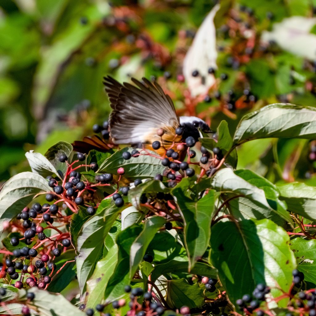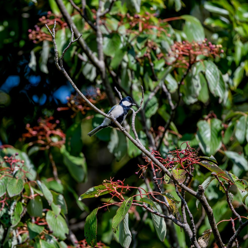 ミズキの果実に集まる 野鳥たち-ジョウビタキ,メジロ,シジュウカラ