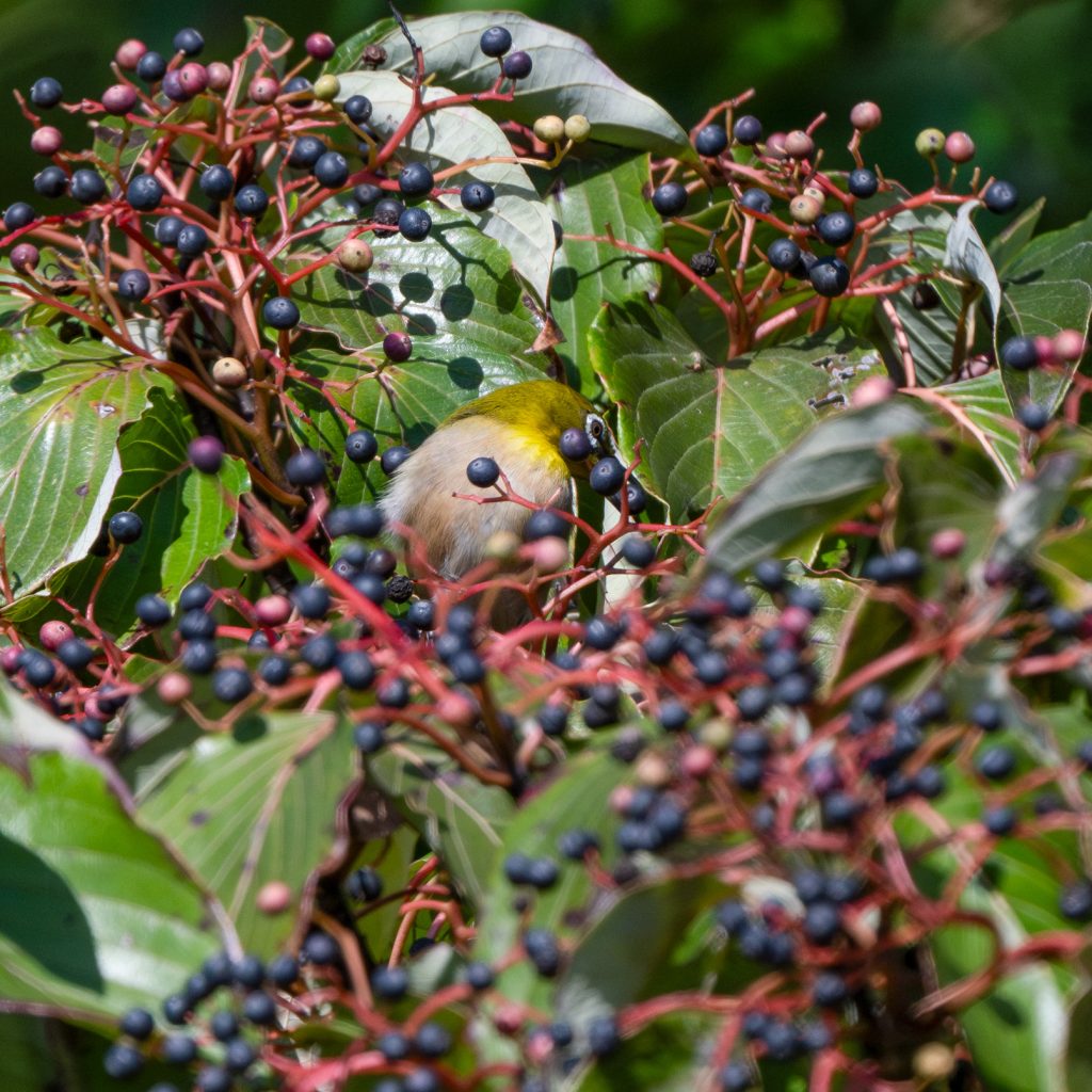みずきの 果実に囲まれて幸せそうなメジロ