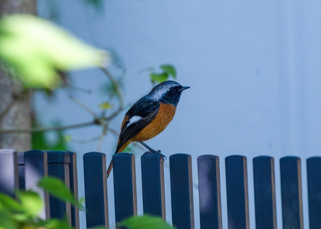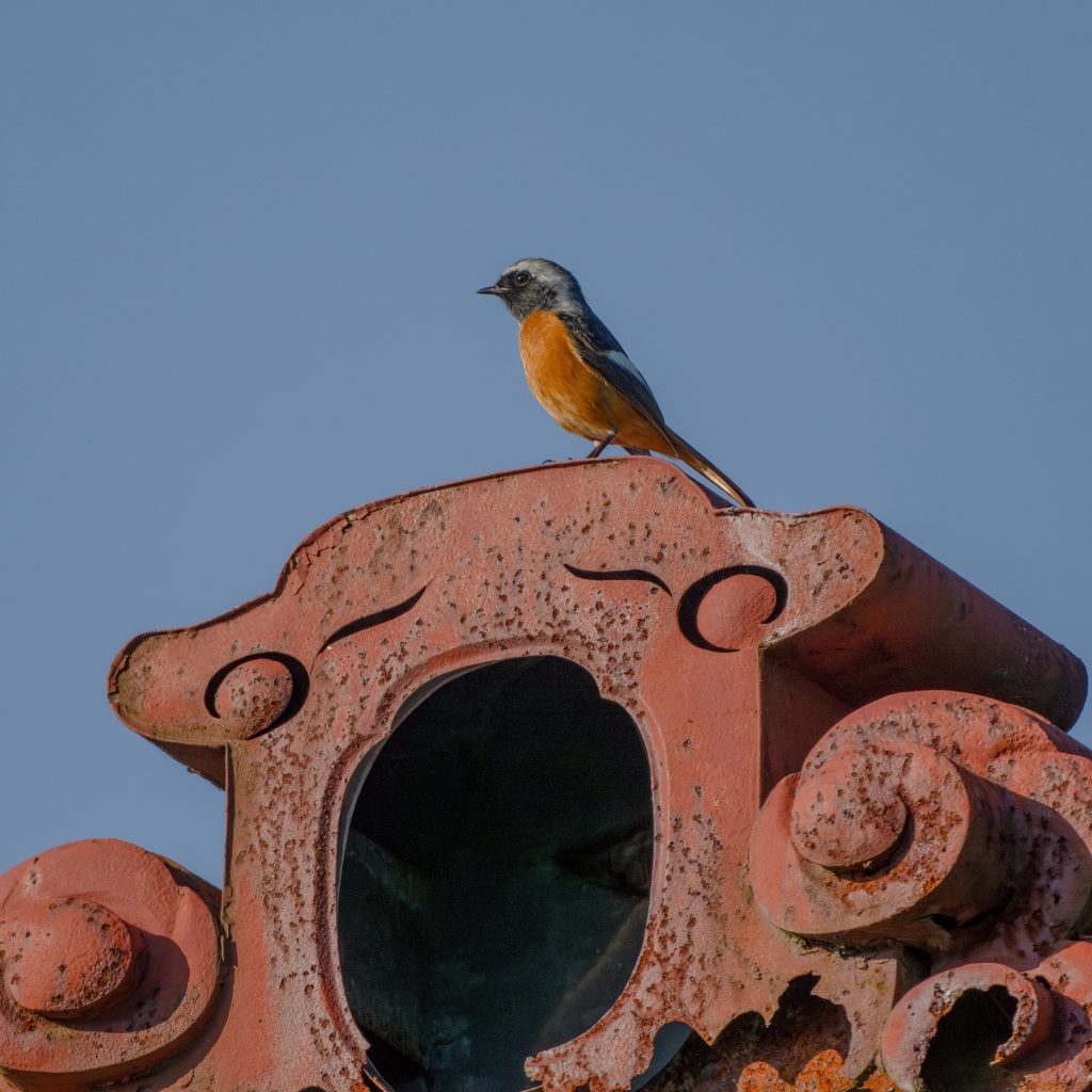 定位置の鬼瓦から様子を伺う ジョウビタキ