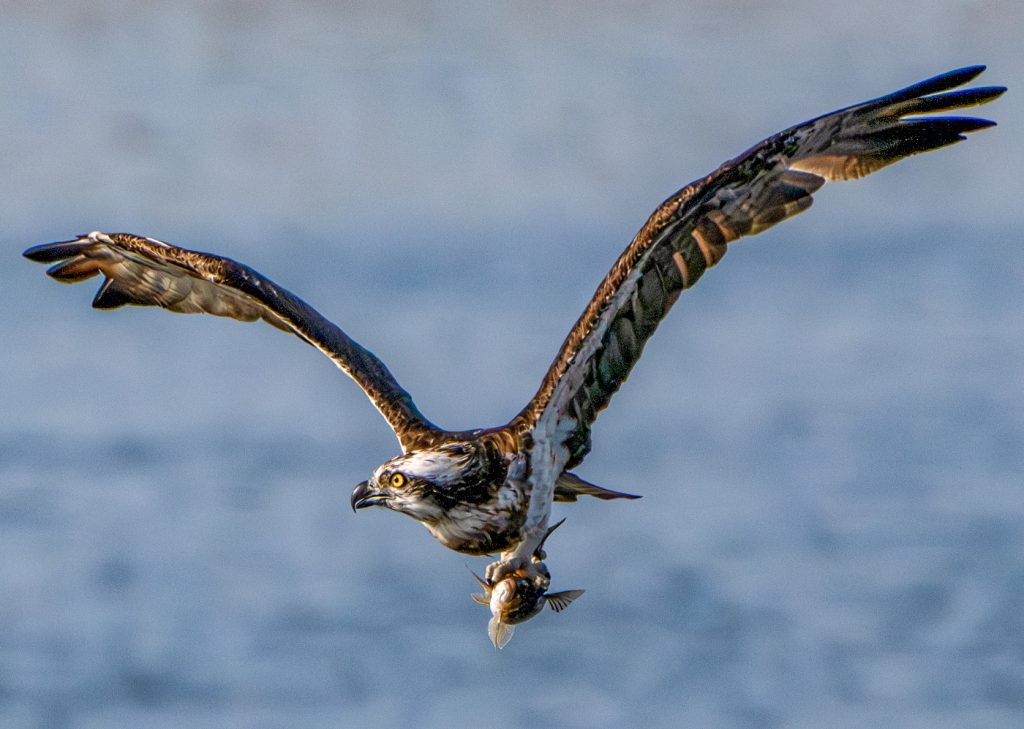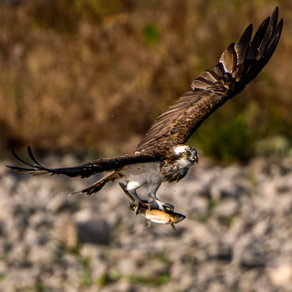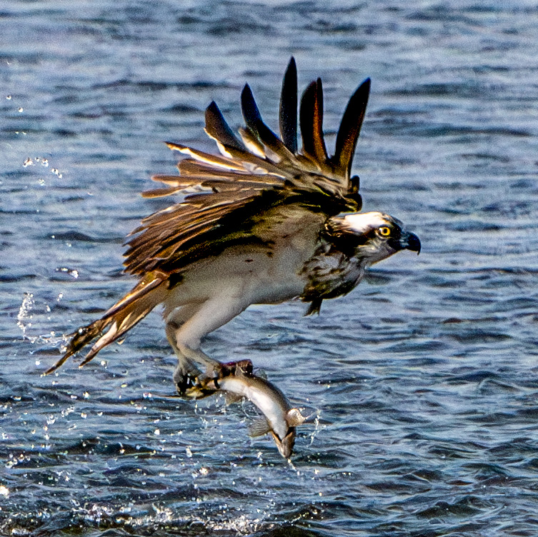今日は初めてのミサゴポイントに行ってみた。結構大物の獲物をがっちりとるシーンを撮影できた。自転車でガタガタ道を上流まで来た甲斐があった。午後になっていたので光の具合は悪かったが 幸運にも 目に光が入っていいシーンが撮影できた。