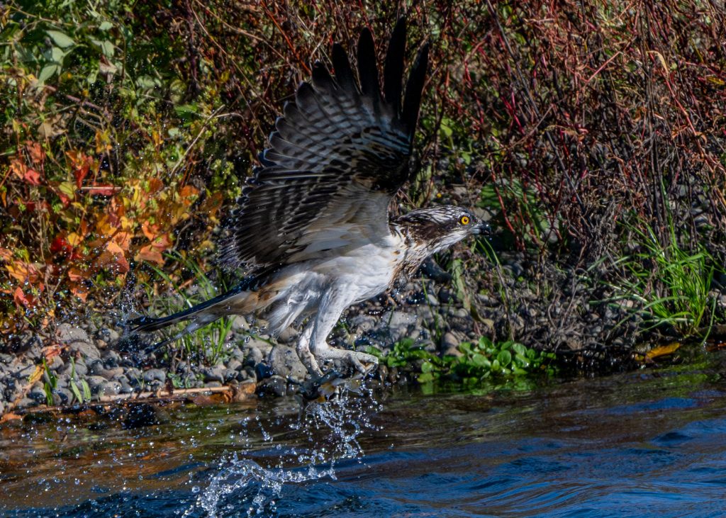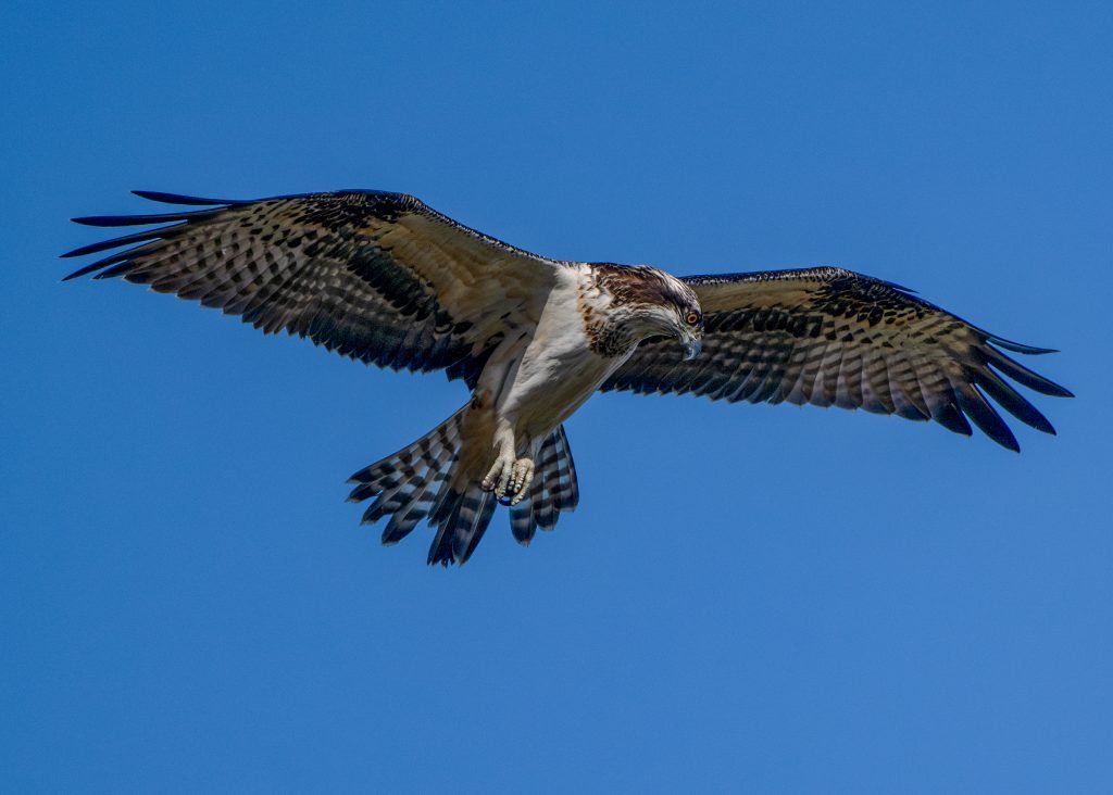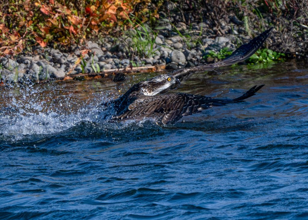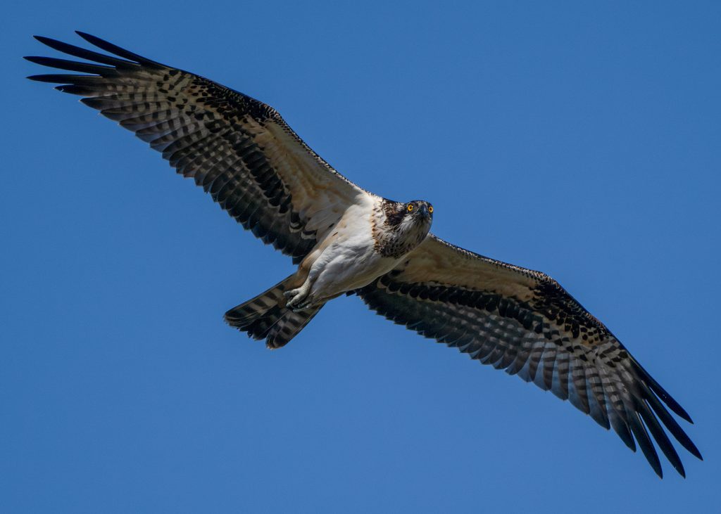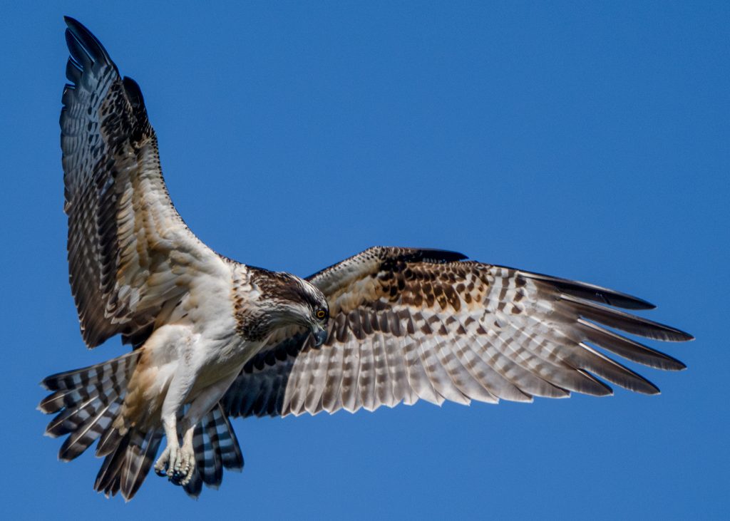 ミサゴがうまく風に乗って,空中停止してあゆを狙う姿を撮影した。