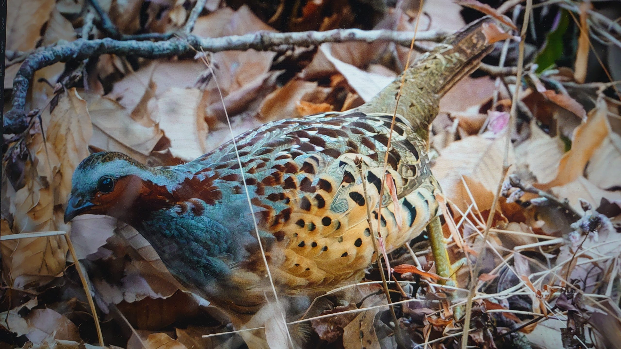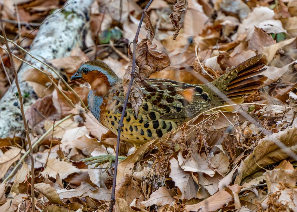 今日も ルリビタキを探して近くの公園に出かけた。ルリビタキの気配はまた 全くなく,帰ろうとしたところ,数年ぶりに コジュケイの撮影に成功した。