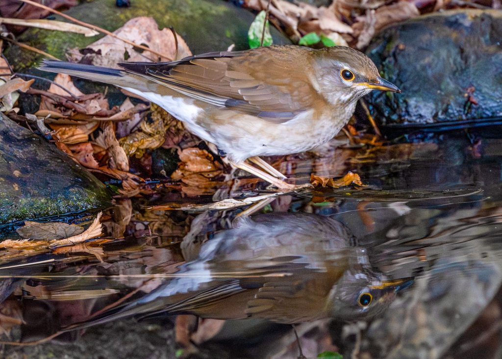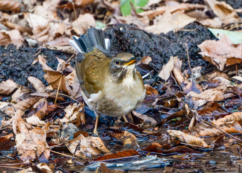 この公園ではたくさんのシロハラがいた。その中でシロハラかマミチャジナイかよくわからない個体もいた。
