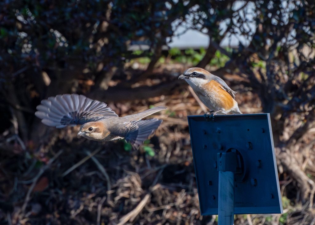 いつもの公園でモズのLove affair模様を撮影。